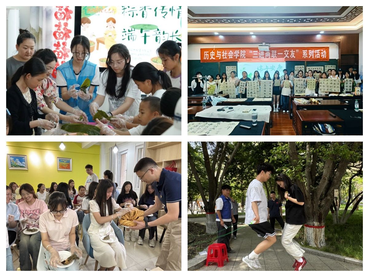 围绕“融情活动”计划,商学院举办的“粽香传情 端午韵长”活动中,各族学生包粽子、品文化,在其乐融融的氛围中感受传统节日魅力;历史与社会学院举办的“诗意端午·墨韵传情”活动,通过“以诗言志、以书传情”的互动方式深入挖掘端午佳节的文化内涵;生命科学学院联合中国语言文学学院开展“共度佳节——在交往交流交融中铸牢中华民族共同体意识”主题育人工作坊,数学科学学院举办“粽香端午·情融佳节”文化体验融情活动,各族师生一起围坐品粽子、吃馓子,共祝端午安康;体育学院通过纪念“五四运动”106周年暨“三进两联一交友”师生定向越野,引领青年传承五四精神。